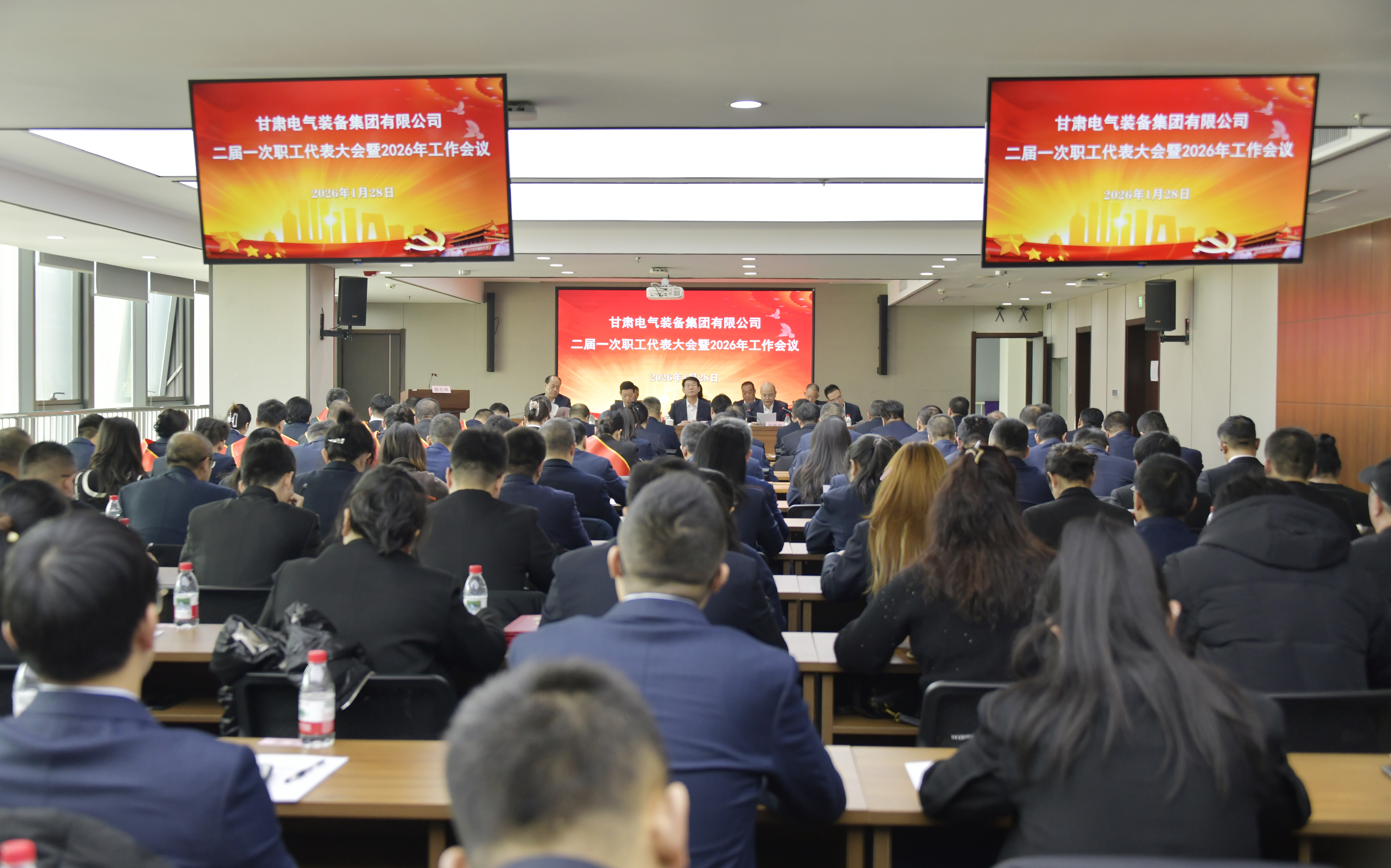 1月28日,英国正版365召开二届一次职工代表大会暨2026年工作会议。会议以习近平新时代中国特色社会主义思想为指导,深入贯彻党的二十大及二十届历次全会精神,全面落实习近平总书记视察甘肃重要讲话重要指示精神,及中央和省委经济工作会议、省委十四届九次全会精神,总结2025年及“十四五”时期发展成效,研判“十五五”发展形势,部署2026年重点任务,为集团高质量发展新征程凝聚共识、明确方向。(大会现场)集